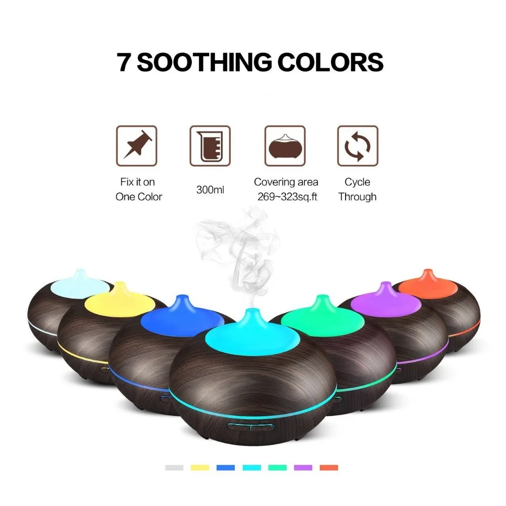 Купить 7 цветов Изменение светодио дный светодиодные Арома диффузор 300 мл древесины Ароматерапия Эфирные масла ультразвуковой увлажнитель воздух... Цена Дешево
