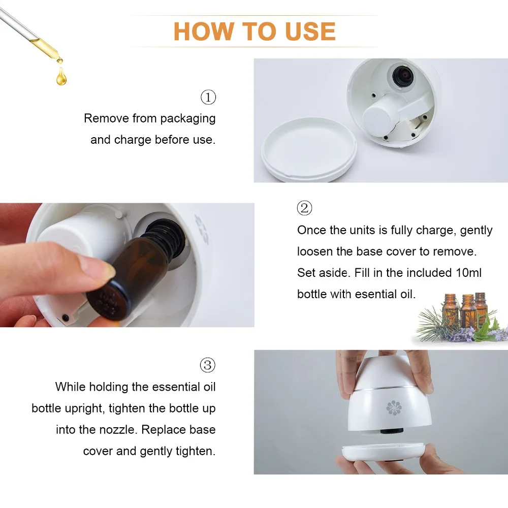 Купить Безводный ароматерапия диффузор Эфирные масла перезаряжаемые аромат распылитель для дома автомобиля работы Йога путешествия спа Продажа Дешево.
