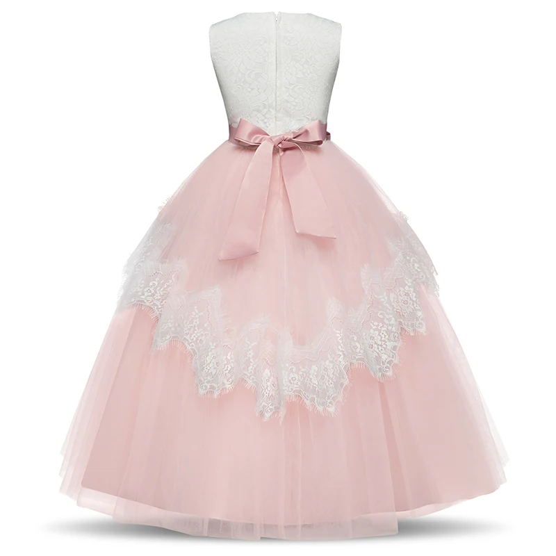 Купить Детский длинный праздничный костюм для девочек, нарядное кружевное вечернее платье, Детская летняя одежда, подростковое многослойное плат... Цена Дешево
