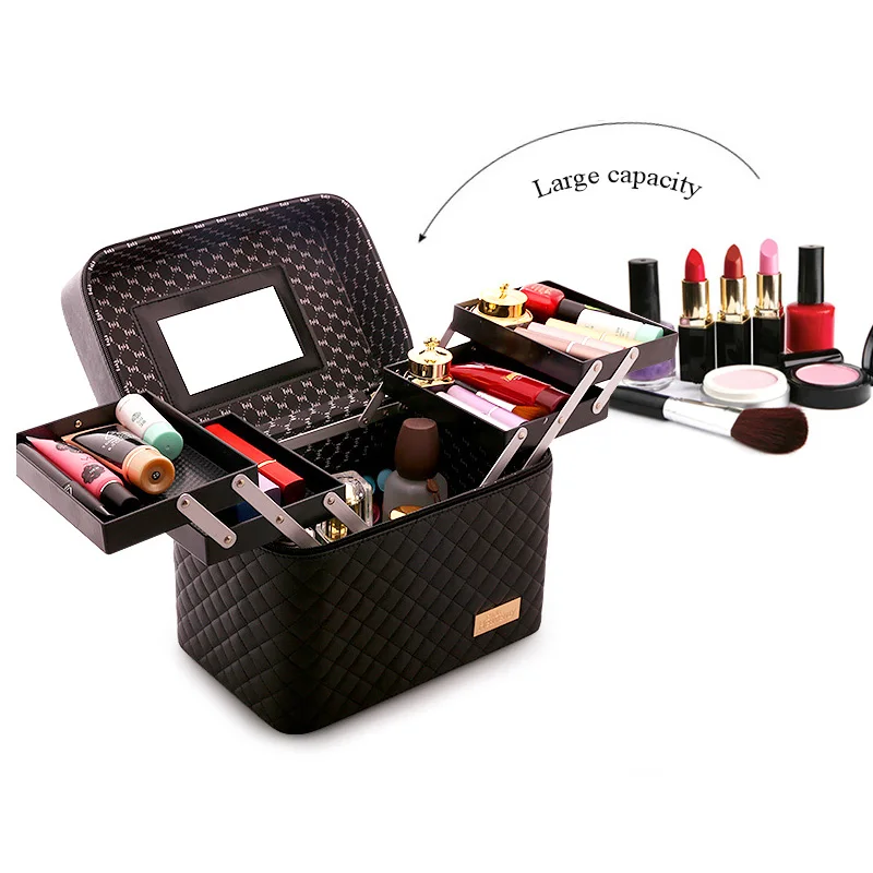 Купить Для женщин большой ёмкость Professional Макияж Организатор Мода несессер косметичка Многослойные коробка для хранения портативный изысканный ч... Цена Дешево