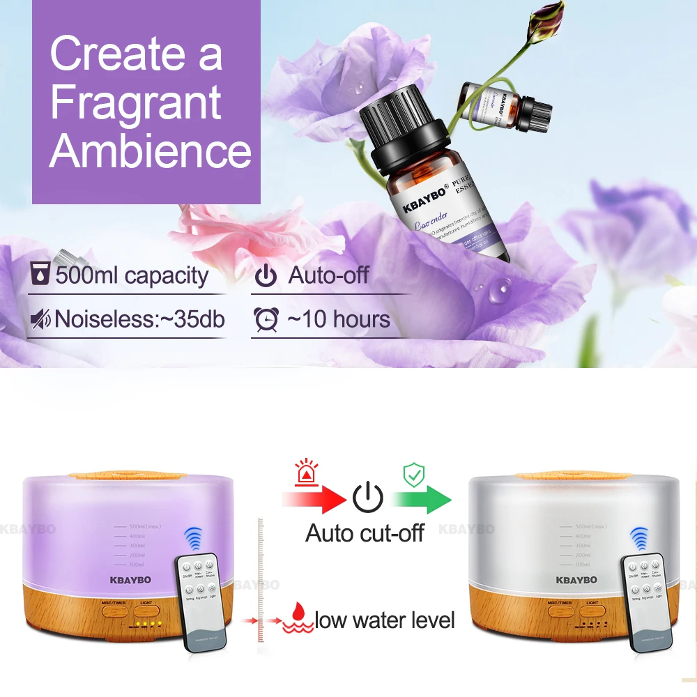 Купить 500 мл дистанционного управления Аромат Эфирного Масла Диффузор Ультразвуковой Увлажнитель Воздуха с 4 Таймер Настройки 7 Изменение Цвета СВ... Цена Дешево.