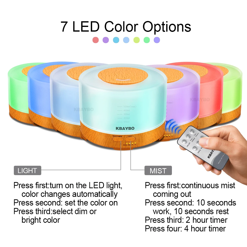 Купить 500 мл дистанционного управления Аромат Эфирного Масла Диффузор Ультразвуковой Увлажнитель Воздуха с 4 Таймер Настройки 7 Изменение Цвета СВ... Цена Дешево