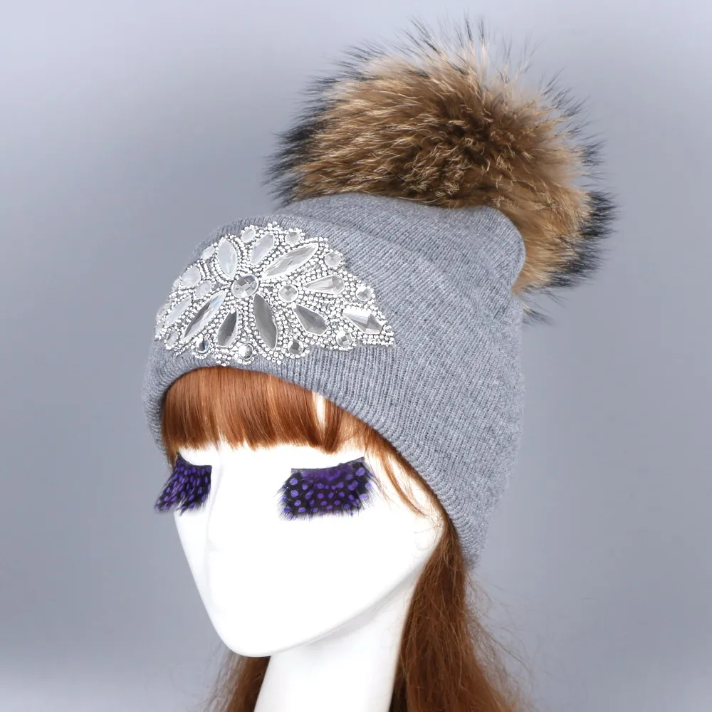 Купить Норки и Лисий Мех животных мяч кепки пипипидастр зимняя шапка для женщин девушки вязаная шерстяная шапка хлопок шапочки Фирменная Новин Цена Дешево.