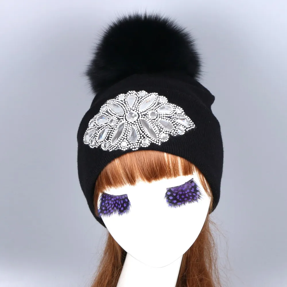 Купить Норки и Лисий Мех животных мяч кепки пипипидастр зимняя шапка для женщин девушки вязаная шерстяная шапка хлопок шапочки Фирменная Новин Продажа Дешево
