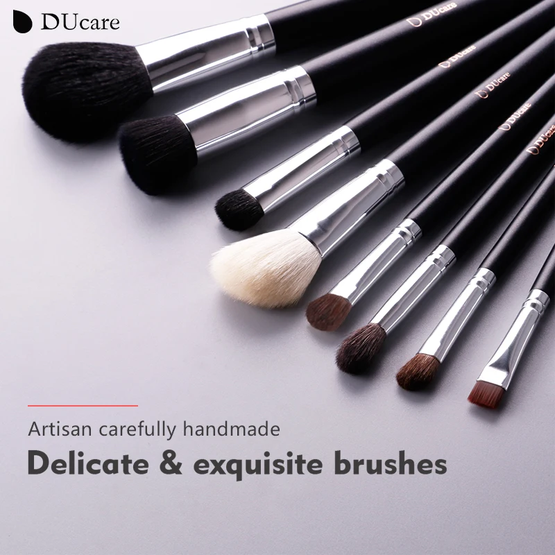 Купить DUcare макияж кисти 12 шт. натуральных волос набор косметики с кожаные сумки деревянная ручка высокого качества Косметика набор кистей Цена Дешево.