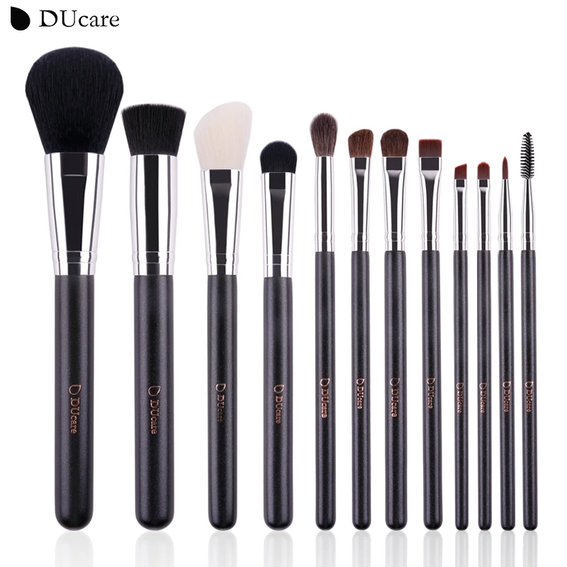 Купить DUcare макияж кисти 12 шт. натуральных волос набор косметики с кожаные сумки деревянная ручка высокого качества Косметика набор кистей Цена Дешево