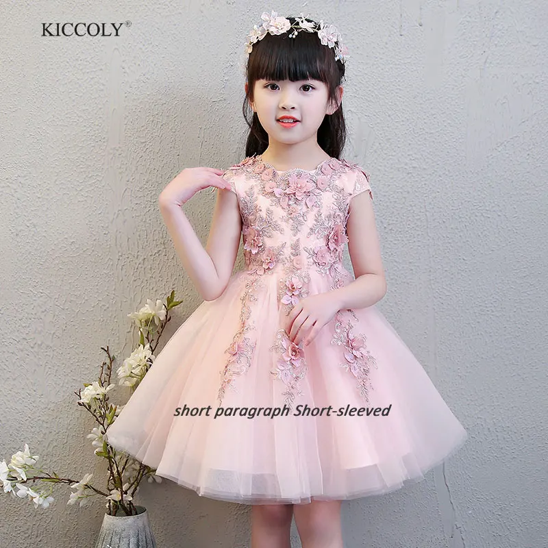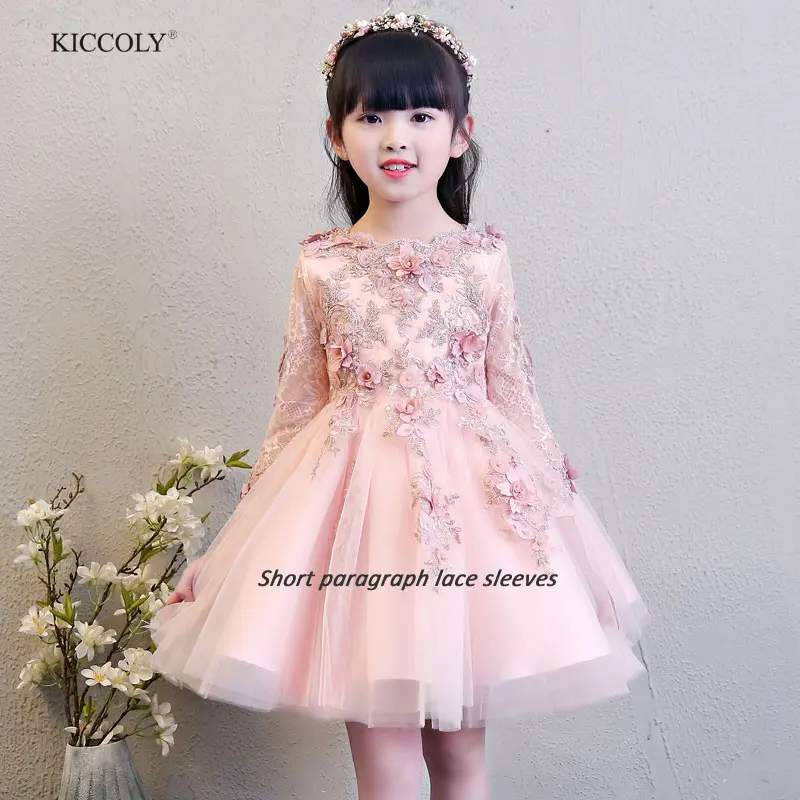 Купить KICCOLY Новинка 2018 года, элегантное розовое платье с кружевными рукавами для девочек, детское платье для первого причастия, торжественное свад... Продажа Дешево.