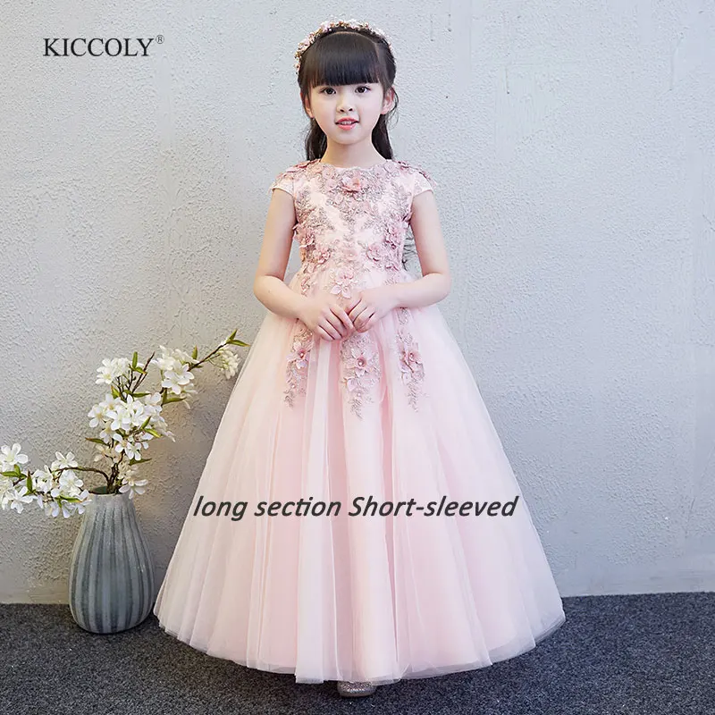Купить KICCOLY Новинка 2018 года, элегантное розовое платье с кружевными рукавами для девочек, детское платье для первого причастия, торжественное свад... Продажа Дешево