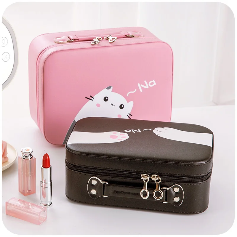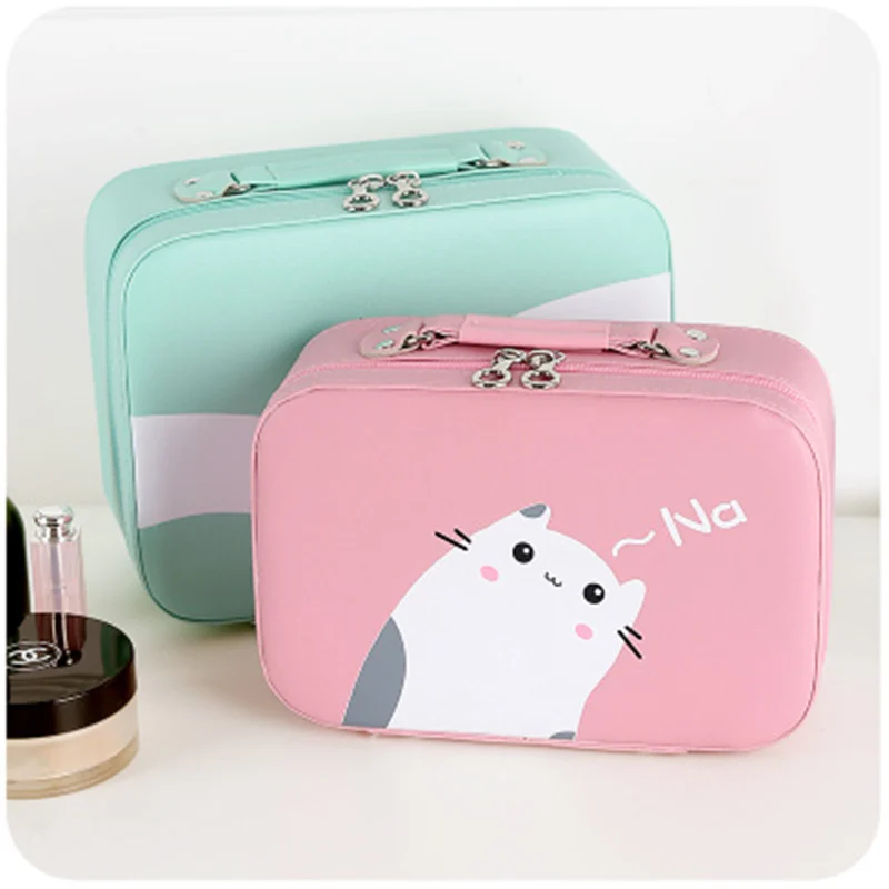 Купить Милый Кот кожа макияж коробка для хранения, косметичка Travel Woman, косметичка ювелирные изделия сумка органайзер, organisateur de sac основной Продажа Дешево.