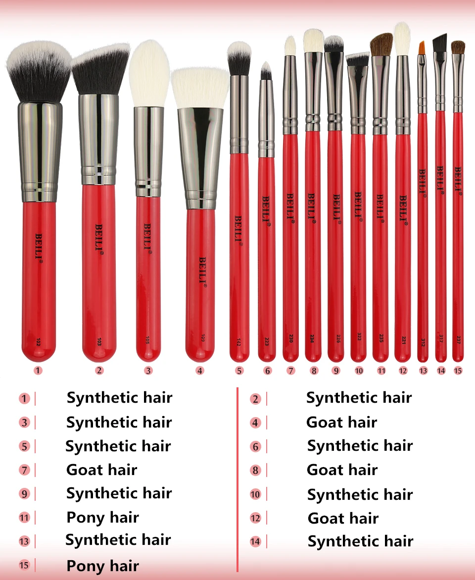 Купить Бейли 15 шт. кисти для макияжа для век Пудра Косметика Make Up Brush Set натуральные волосы бровей Профессиональный фонд красной ручкой Цена Дешево