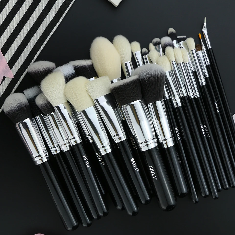 Купить Бейли черный полный Профессиональный Пудра Корректор Контур натурального козьего волоса глаза смешивания 30 шт. набор кистей для макияжа Продажа Дешево.