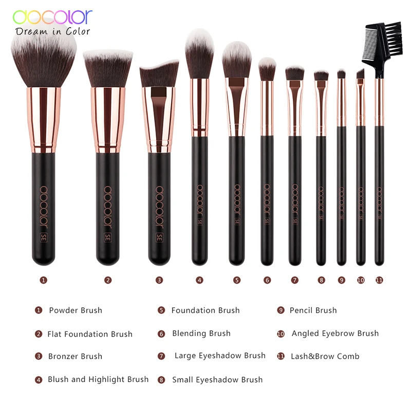 Купить Docolor 11 шт. Профессиональные кисти для макияжа Набор Пудра Тени для век составляют щетки Косметика мягкий синтетический волос Продажа Дешево.