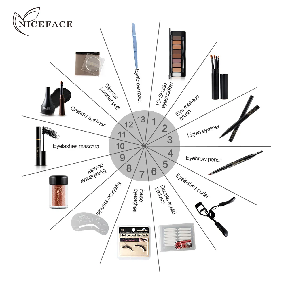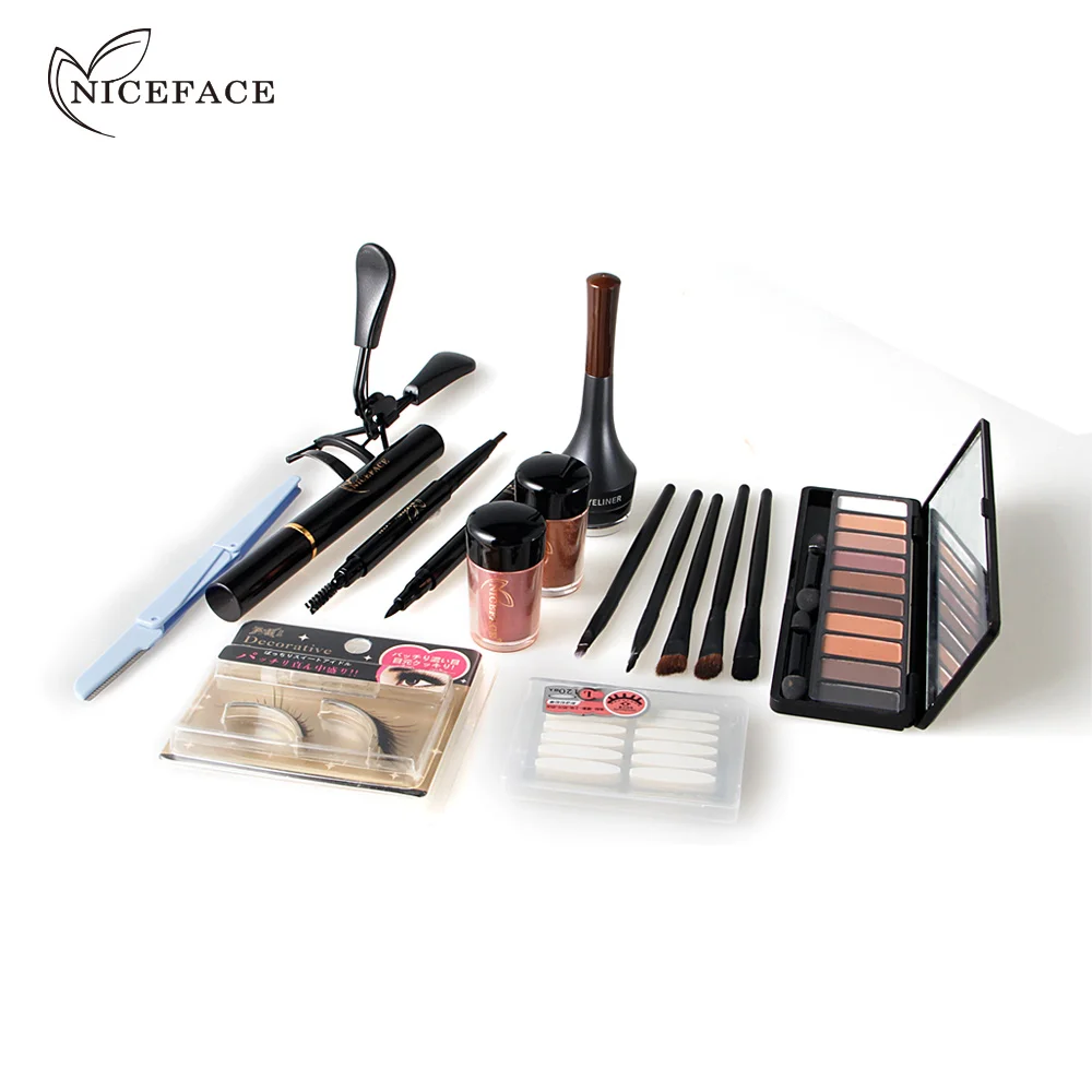 Купить NICEFACE 13 шт. набор для макияжа 10 цветов Теплые телесные Цвета Тени для век Черная тушь для ресниц подводка для глаз с тени для век набор кистей Цена Дешево.