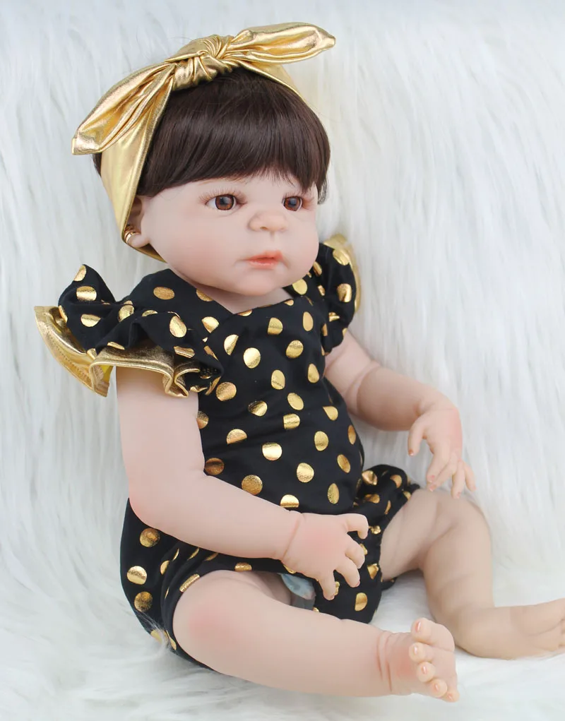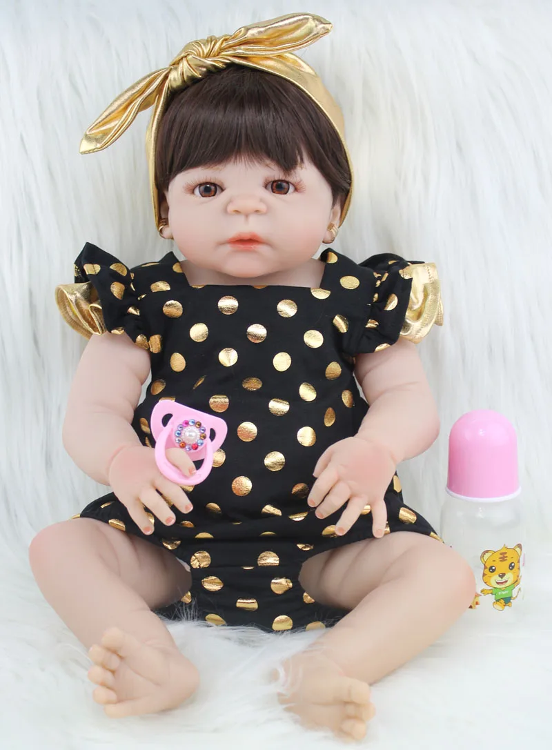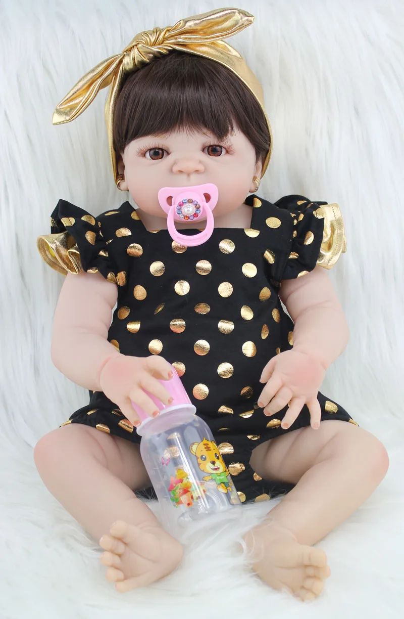 Купить 55 см полный силиконовый корпус Reborn Baby Doll игрушка Реалистичная новорожденная принцесса младенцы кукла с серьгой девочка Brinquedos купать игрушк... Цена Дешево.