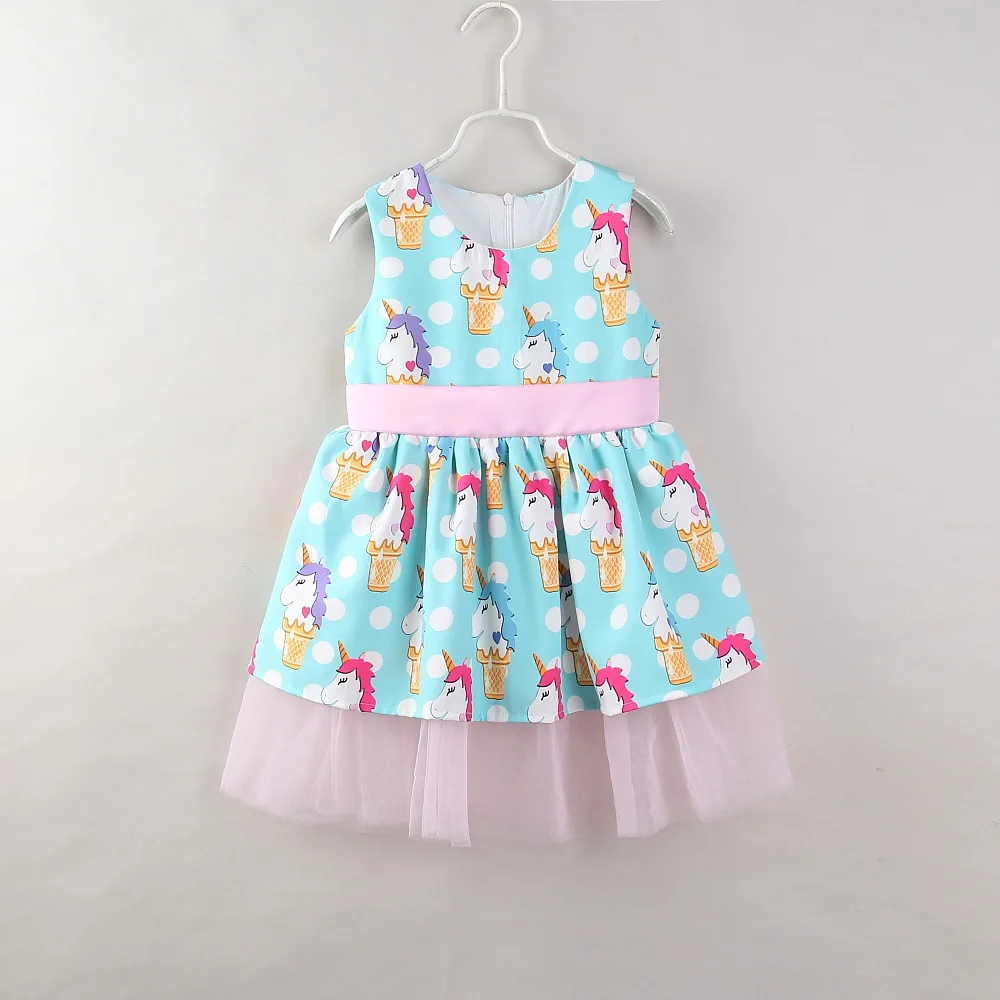 Купить DKDGNY Новинка 2018 года, платье для маленьких девочек, платье без рукавов с рисунком единорога для малышей, платье с принтом, платья без рукавов ... Продажа Дешево.