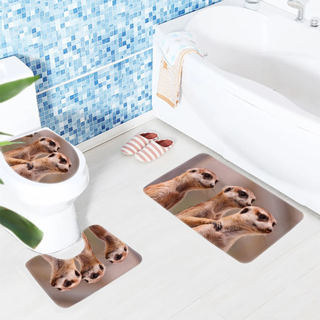 Купить 3 шт. Ванная комната Коврики комплект три коричневый Сурикаты Товары для ванной нескользящие Для ванной Коврики туалет Коврики Цена Дешево