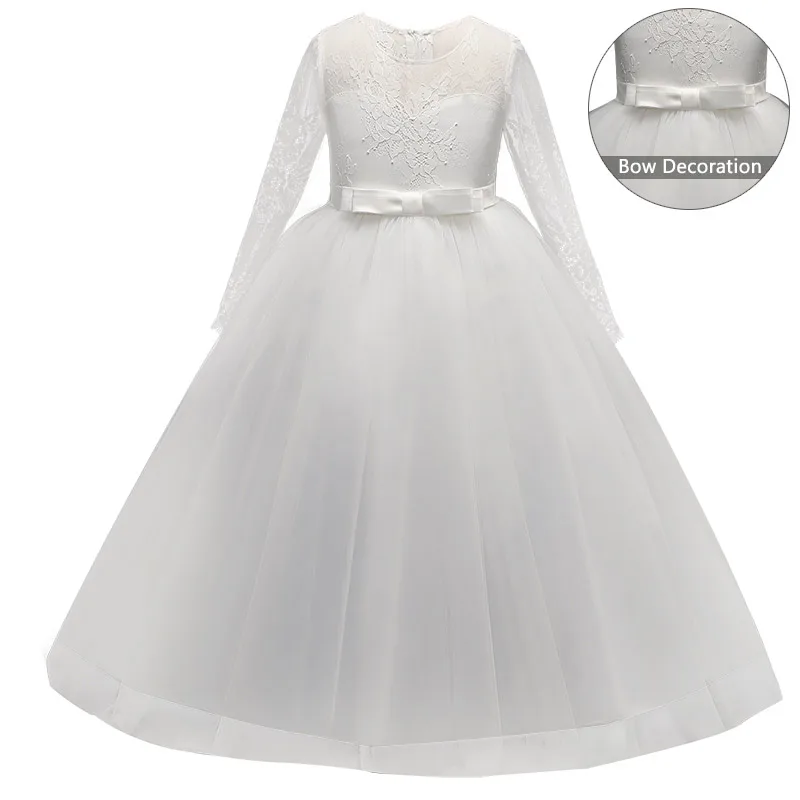 Купить От 5 до 14 лет дети девочки длинные белые кружева цветок вечерние Вечеринка бальное платье Выпускные платья Детские Девочки Принцесса свадьб... Продажа Дешево