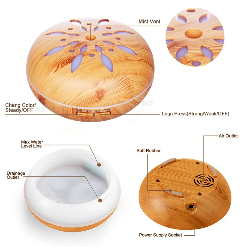Купить 550 мл увлажнитель воздуха аромат эфирное масло диффузор дерево зерна ультразвуковой холодный туман увлажнитель воздуха для офиса дома спал... Цена Дешево