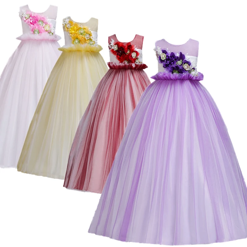 Купить Berngi 4 14 лет Детское платье для девочек свадебное Тюль Длинные для девочек платье с цветочным принтом элегантное платье принцессы празднично... Цена Дешево