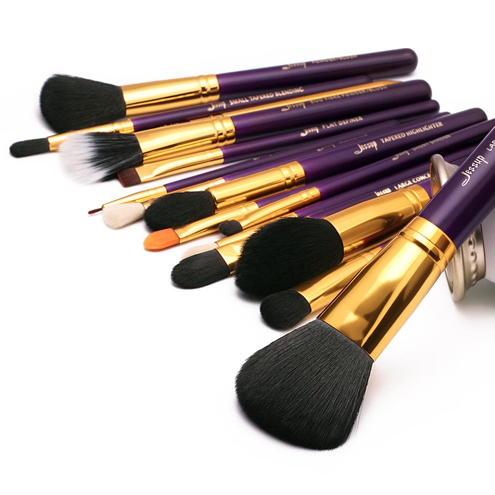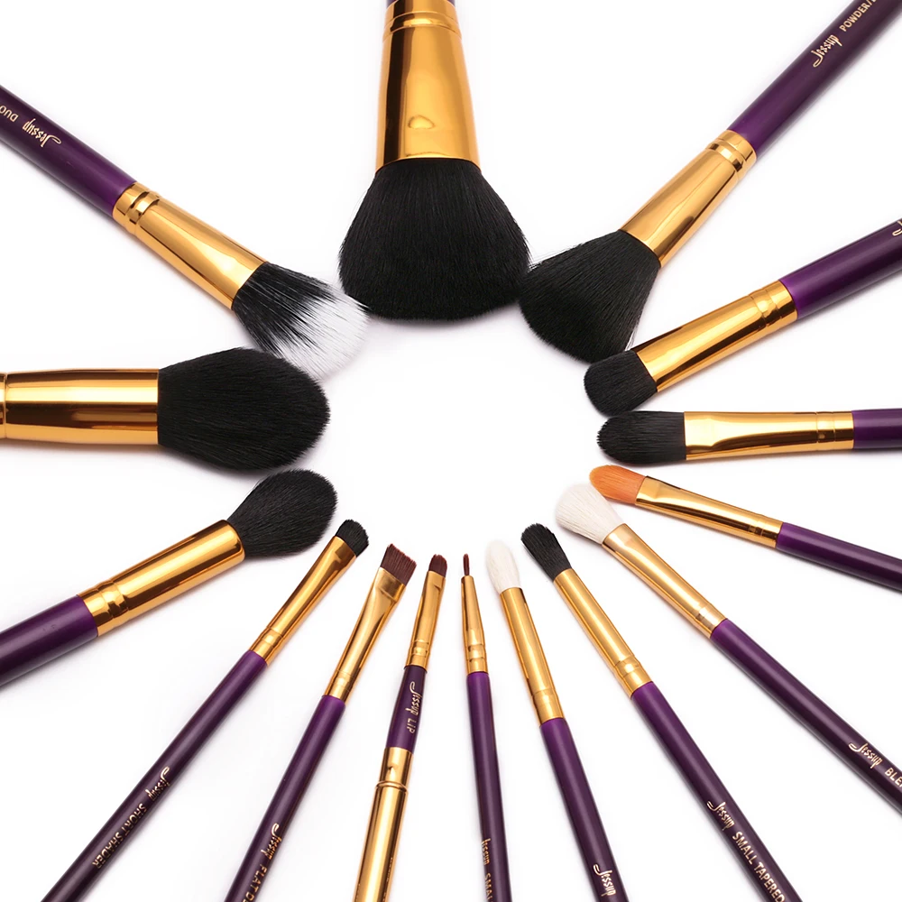 Купить Джессап Набор 15 шт. фиолетовый золото кисти для макияжа Набор Косметика Инструмент Макияж кисть Пудра Тени для век подводка для губ Продажа Дешево.