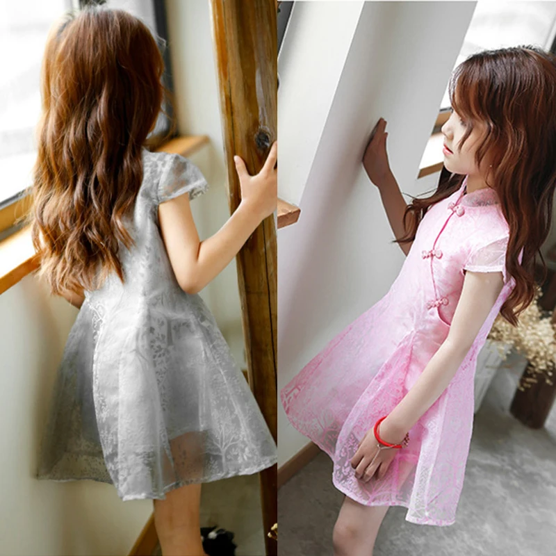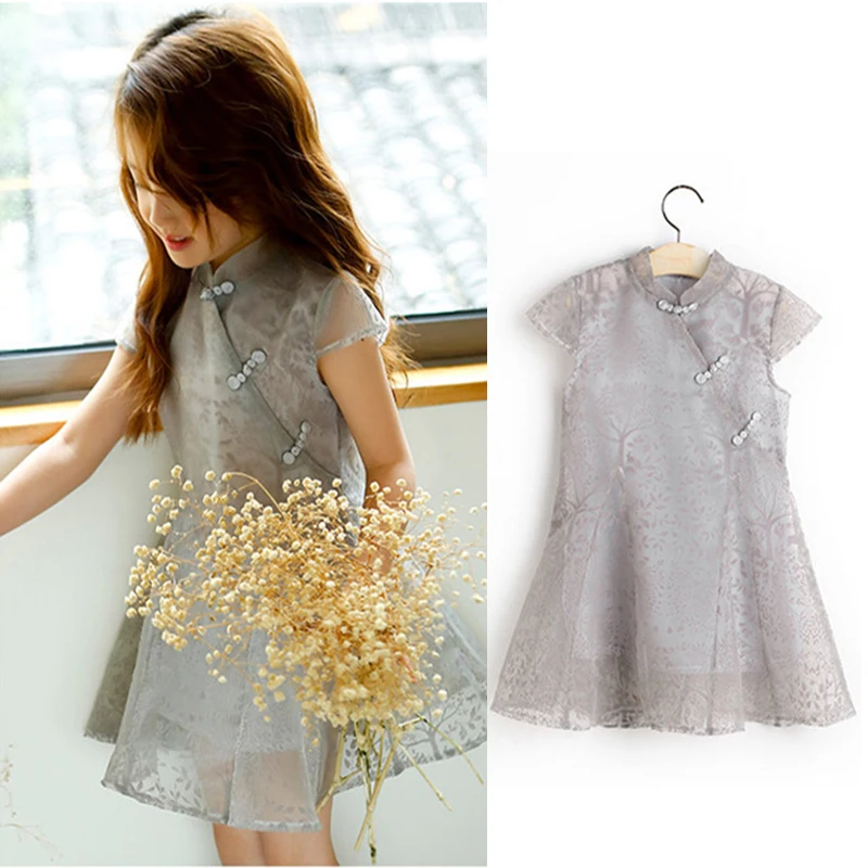 Купить Девушка платье Чонсам 2018 летняя детская одежда Китайский Стиль кружевное элегантное Повседневное маленьких и больших девочек путешествия ... Продажа Дешево