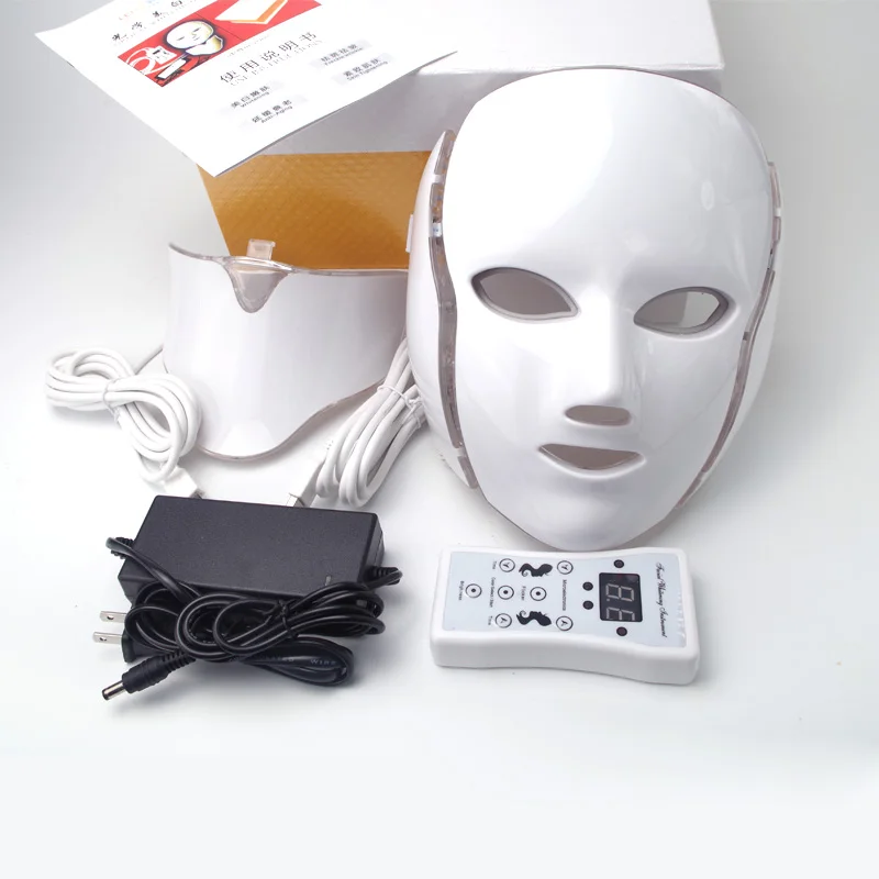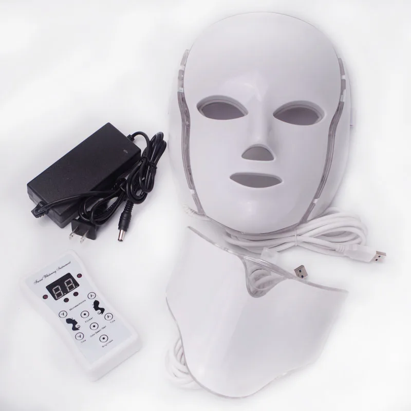 Купить 7 цветов светодио дный маска для лица с шейным омоложением кожи уход за лицом Красота анти акне терапия отбеливание кожи затянуть Продажа Дешево.