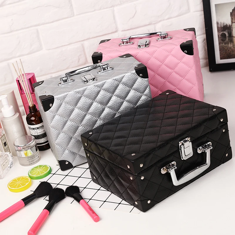 Купить Мода Diamond Lattic косметичка коробка элегантный для женщин составляют мешок несессер чемодан Макияж Организатор зеркало Tote Роскошные 2018 Новый Продажа Дешево.