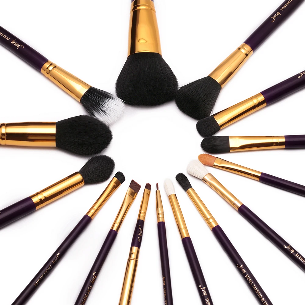 Купить Джессап 15 шт. Кисточки для макияжа фиолетовый золото pincel пудра для макияжа brochas maquillaje Фонд Тени для век Карандаш для глаз кисть для губ T095 Цена Дешево.