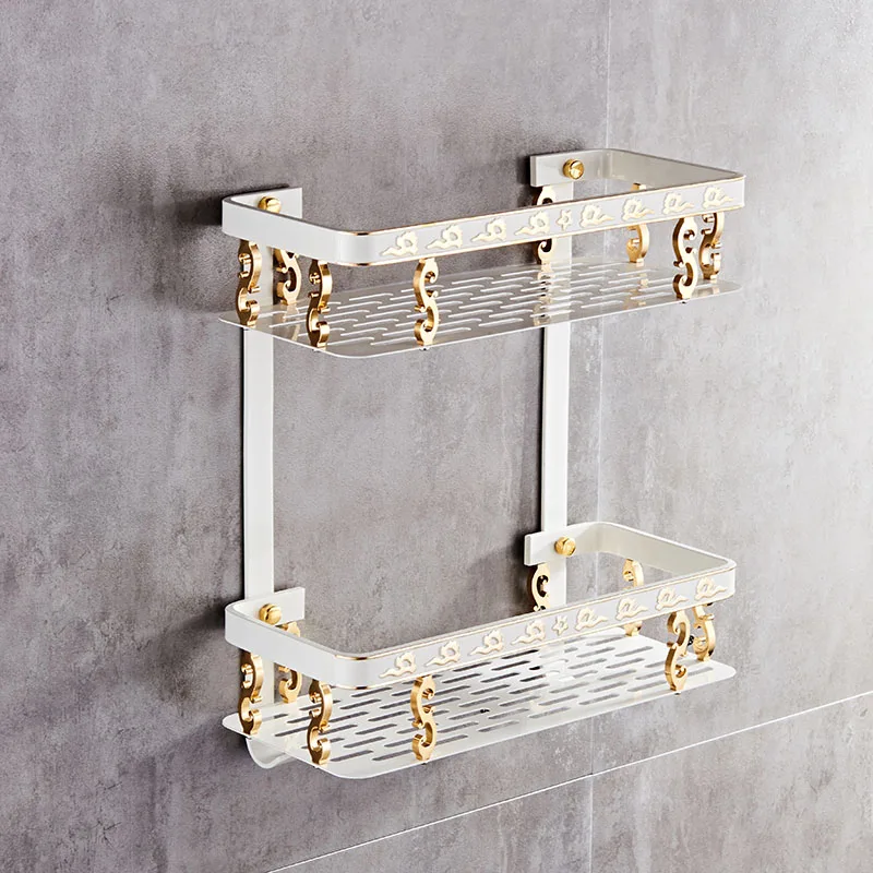 Купить 2 Слои Ванная комната полки стойки металлические Полотенца молния стиральная душ Шампунь косметическая хранения корзина для ванной полки А... Продажа Дешево