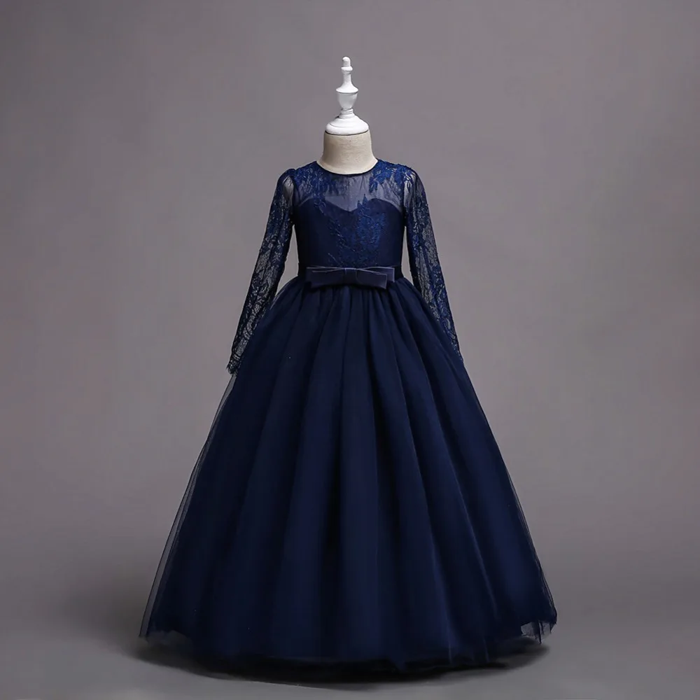 Купить 2018 элегантные платья для девочек с длинным рукавом Тюль Кружева Рождественская одежда Свадебная вечеринка платье для девочки Детские плат... Продажа Дешево