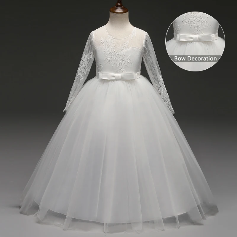 Купить Изысканные Белые фатиновые Свадебные платья для девочек подростков, вечерние длинные вечерние платья для девочек, детская одежда Продажа Дешево