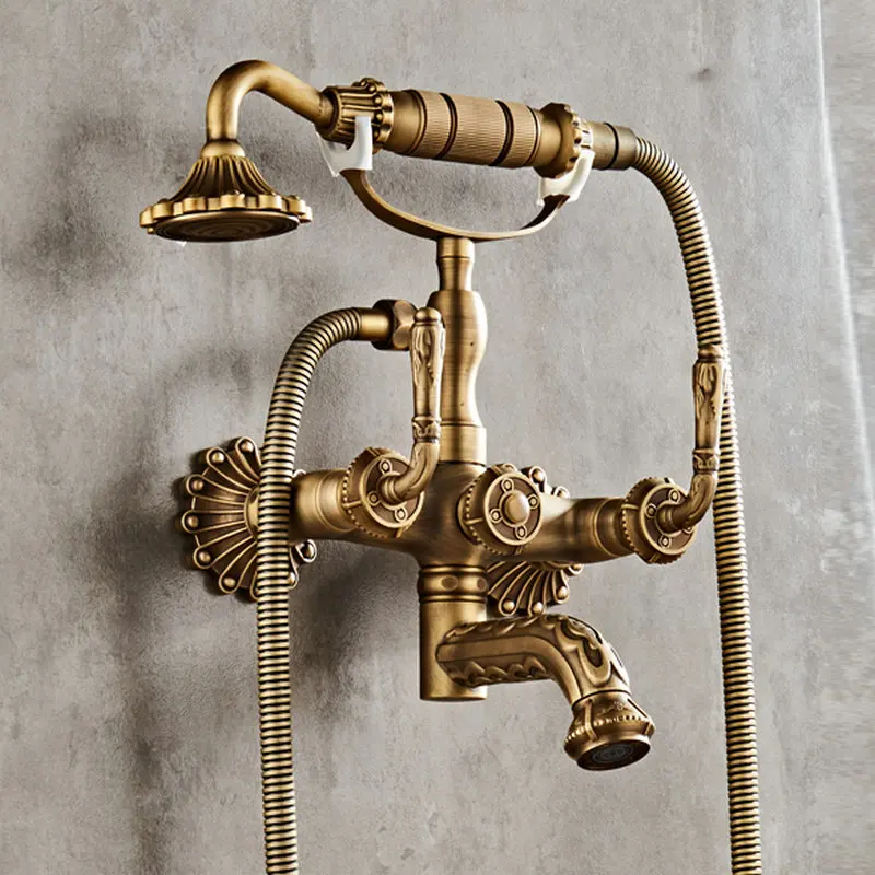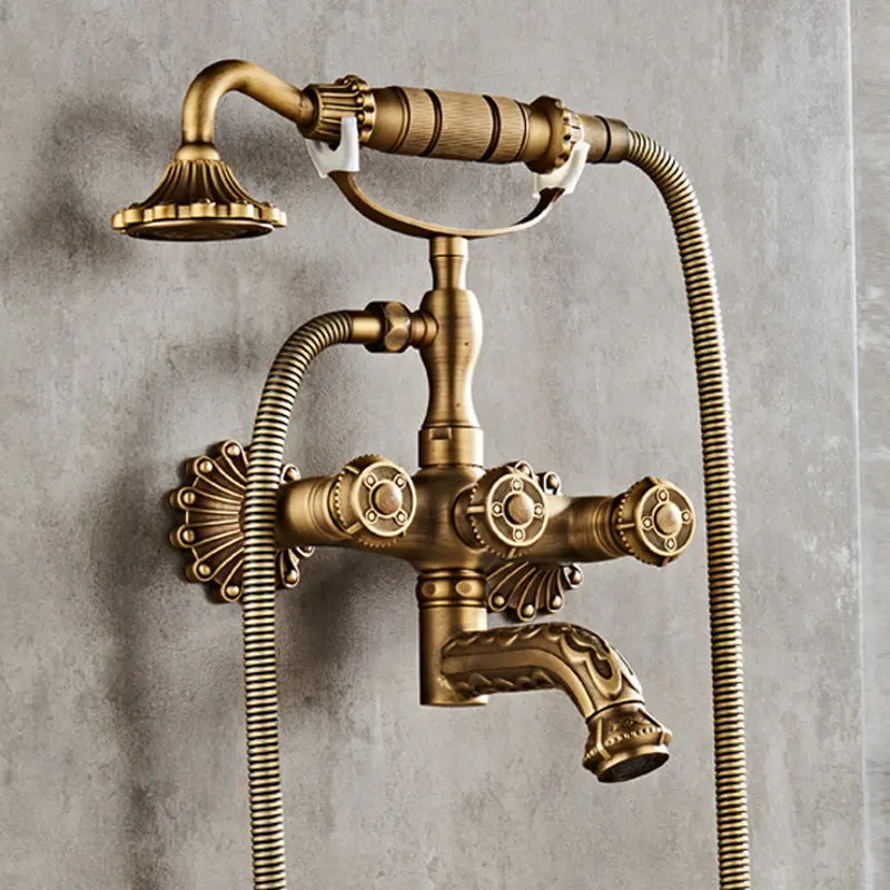 Купить Античный матовый латунный Смеситель для ванны настенный смеситель для ванной комнаты кран с ручной душевой головкой для ванны и душа кран Цена Дешево