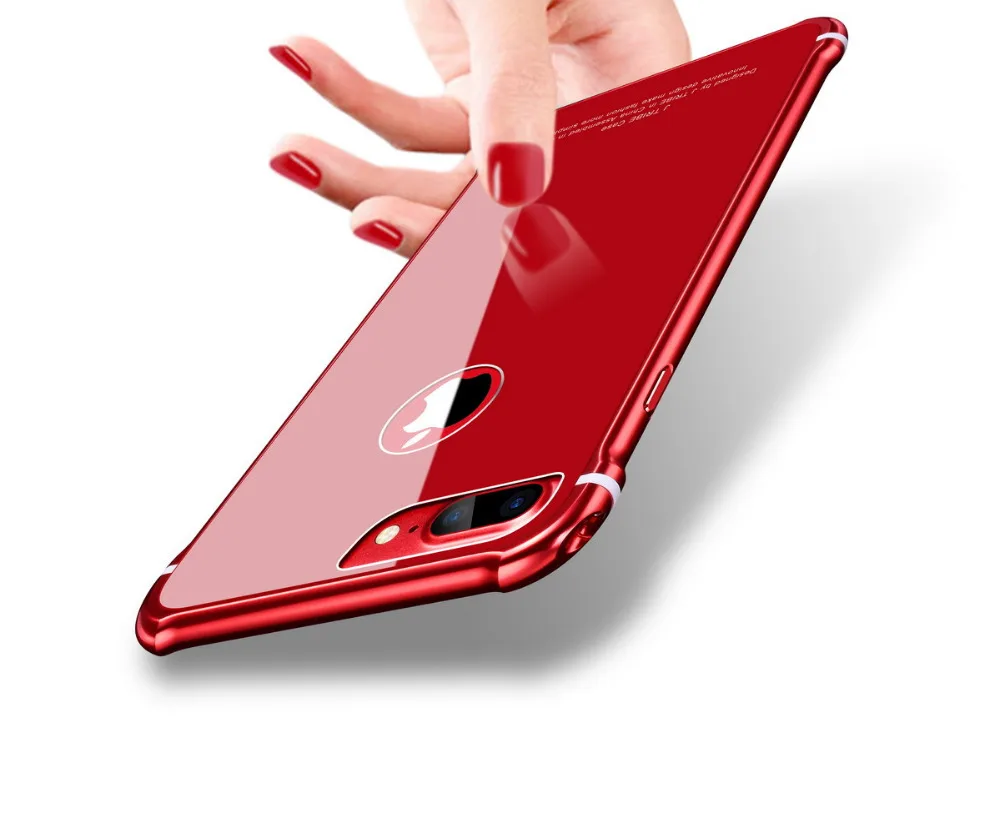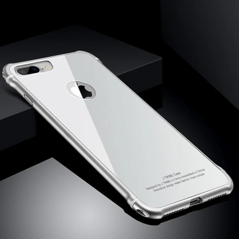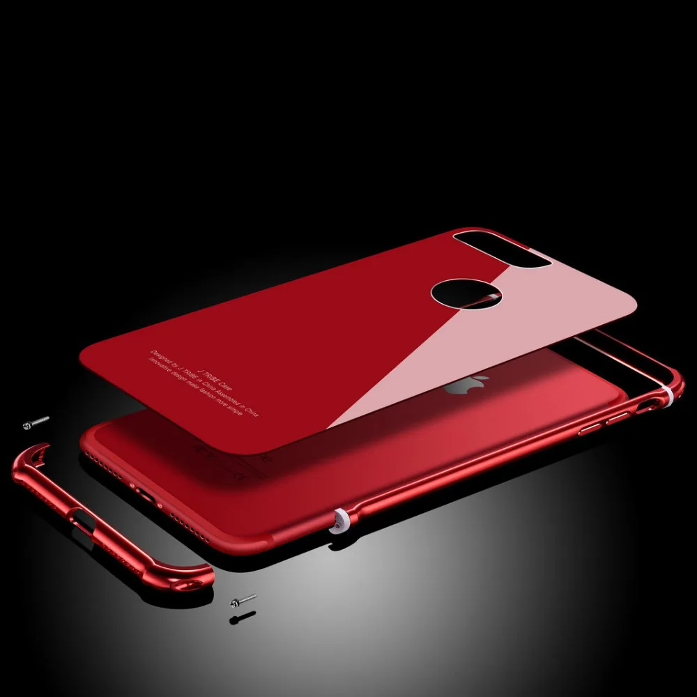 Купить Для iphone X 6 6s 7 7 плюс 8 чехол модные блестящие тонкий жесткий Алюминий металлический каркас + закаленное стекло противоударный назад чехол для... Цена Дешево
