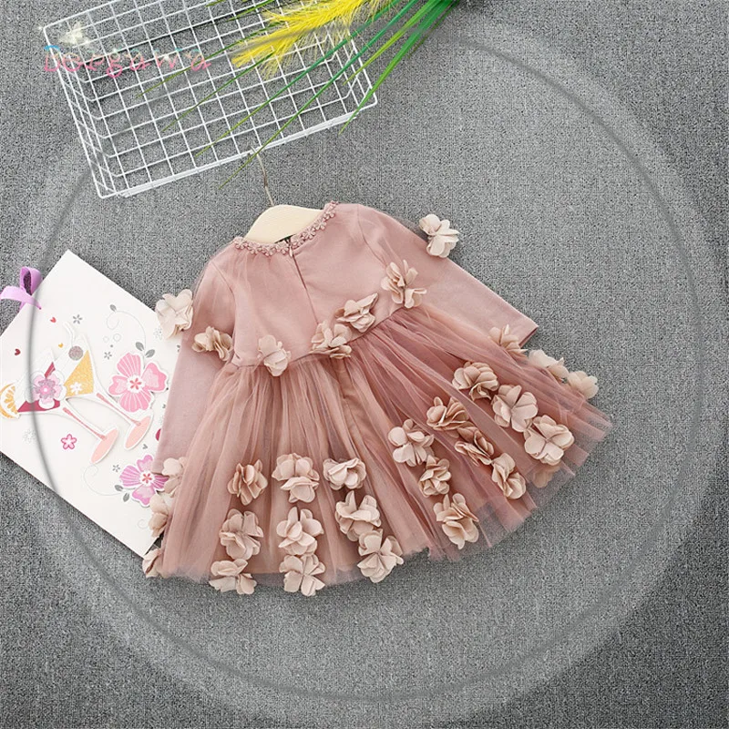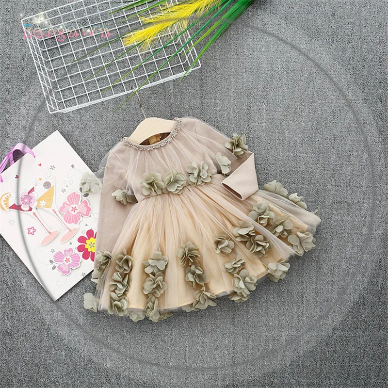 Купить Весна длинным рукавом сетки Лоскутная Цветы Детские Свадебная вечеринка для девочек принцесса фея младенцев бальное платье Vestidos S6350 Продажа Дешево.