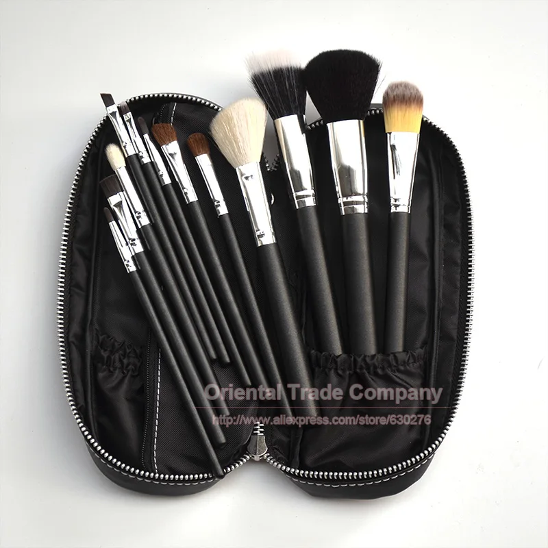 Купить Новый Брендовые щётки для макияжа 12 шт. натуральных волос набор косметики с PU кожаная сумка деревянной ручкой высокое качество составляют К... Цена Дешево