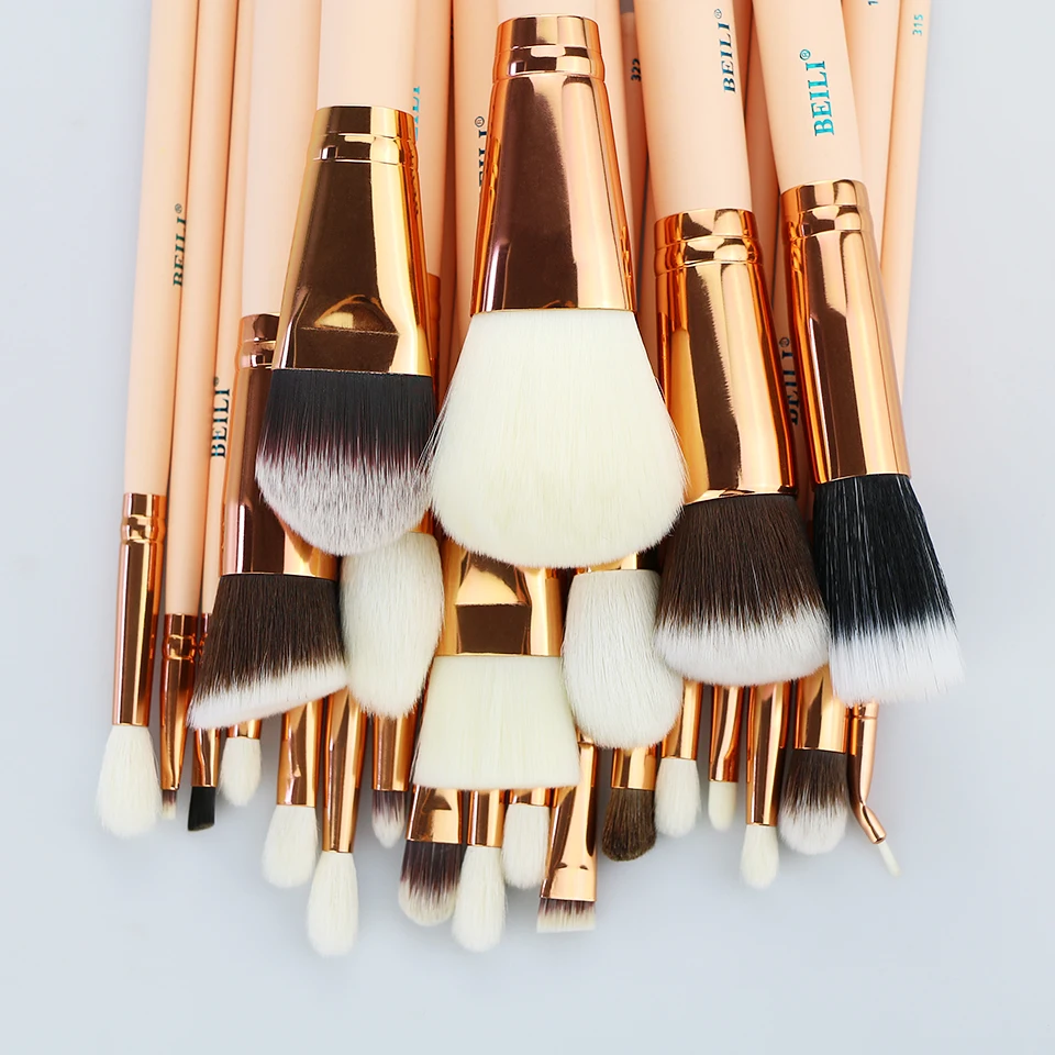 Купить Бейли розовый 25 шт. натурального козьего волоса синтетические волокна шерсти пудра корректор Румяна Тени для век набор кистей для макияжа Продажа Дешево
