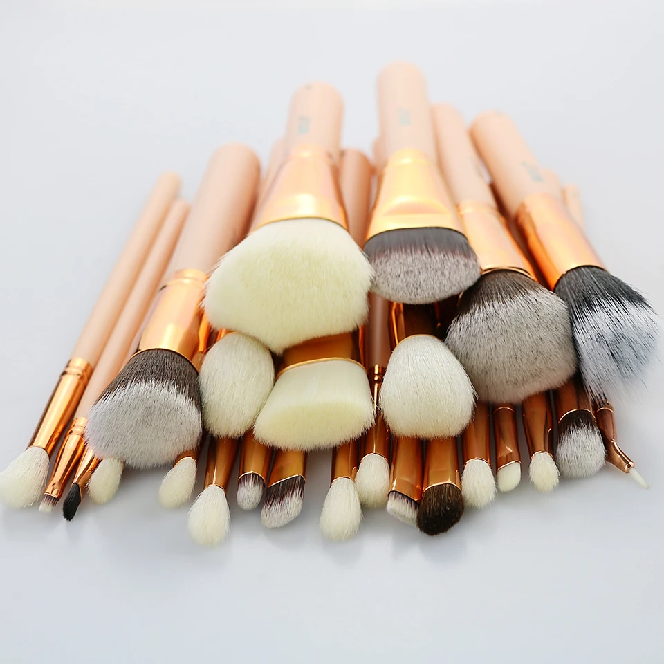 Купить Бейли розовый 25 шт. натурального козьего волоса синтетические волокна шерсти пудра корректор Румяна Тени для век набор кистей для макияжа Продажа Дешево.