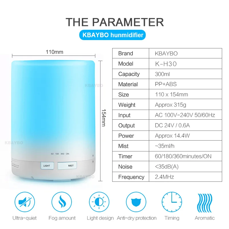 Купить 300 мл Аромат Эфирного Масла Диффузор, Ультразвуковой Увлажнитель Воздуха 8 9 ЧАСОВ Непрерывной Диффузии 7 Изменение Цвета 4 Настройки Таймера Продажа Дешево