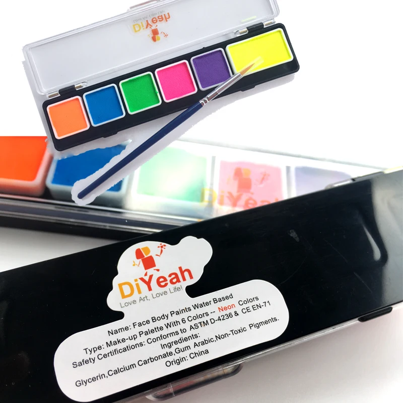 Купить Краска для тела 6 цветов палитры Белый Черный Красный кисть модель краска макияж Пигмент Рождество на водной основе флуоресцентная УФ краск... Продажа Дешево.