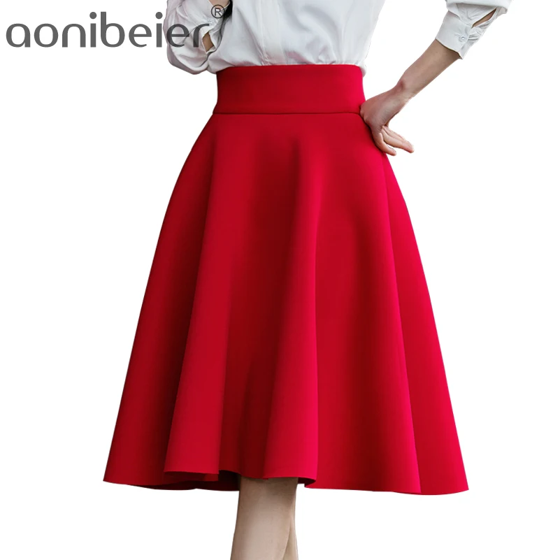 Купить Aonibeier плюс Размеры 5XL Для женщин юбки сезон весна ndash;лето модные Высокая талия большие качели Юбка До Колена Длина Империя плиссированная юбк... Цена Дешево
