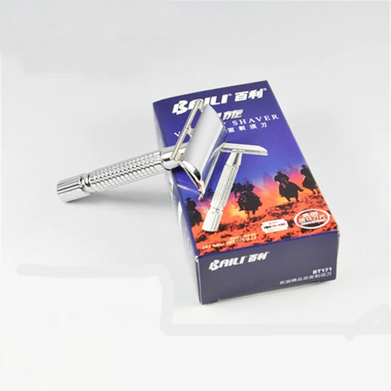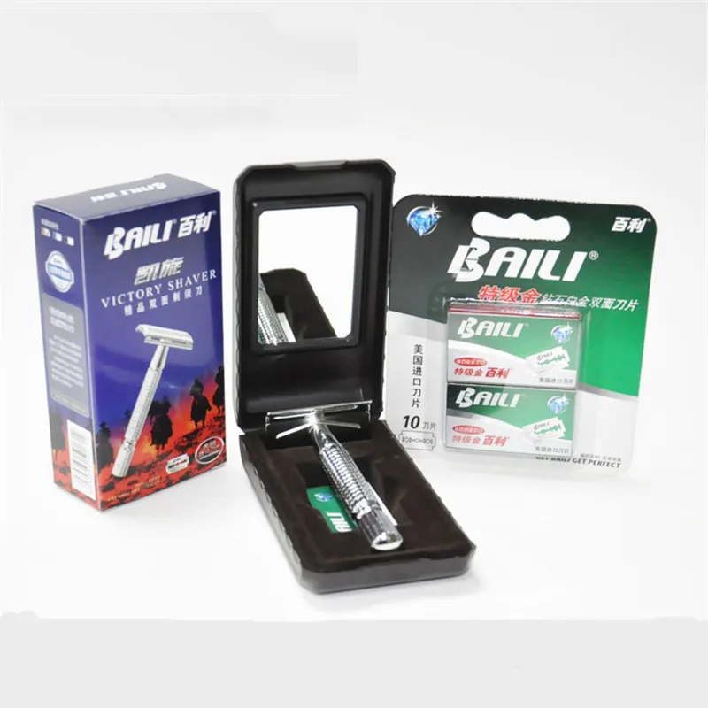 Купить BAILI бритвы Набор для мужчин двойной ножи край Серебро Нержавеющая прямо триммер для бритья высокое качество борода бритья эпилятор Продажа Дешево.