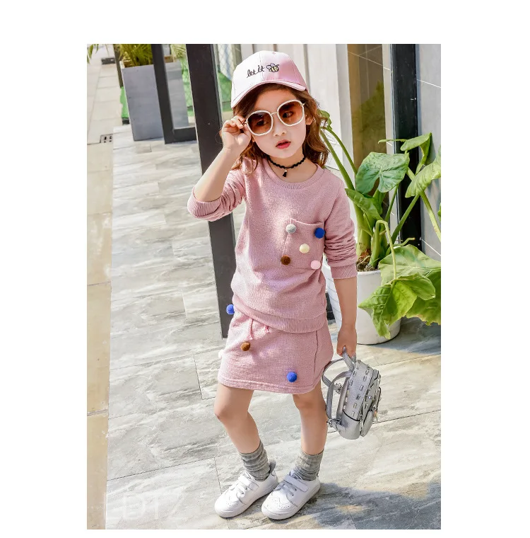 Купить R amp; z 2017 Обувь для девочек зимние Костюмы комплект рубашка с длинными рукавами с мячом с юбкой карандаш розовый голубой цвет модная одежда Ком... Продажа Дешево