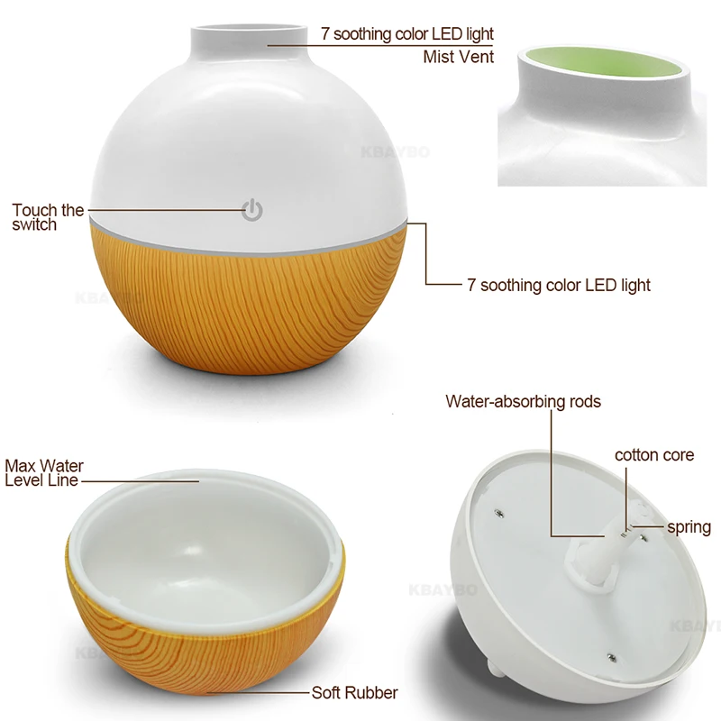 Купить USB Ультразвуковой увлажнитель 130 мл Аромат Диффузор Эфирные масла диффузор ароматерапия создатель тумана с 7 светодиодный свет под дерево Цена Дешево.