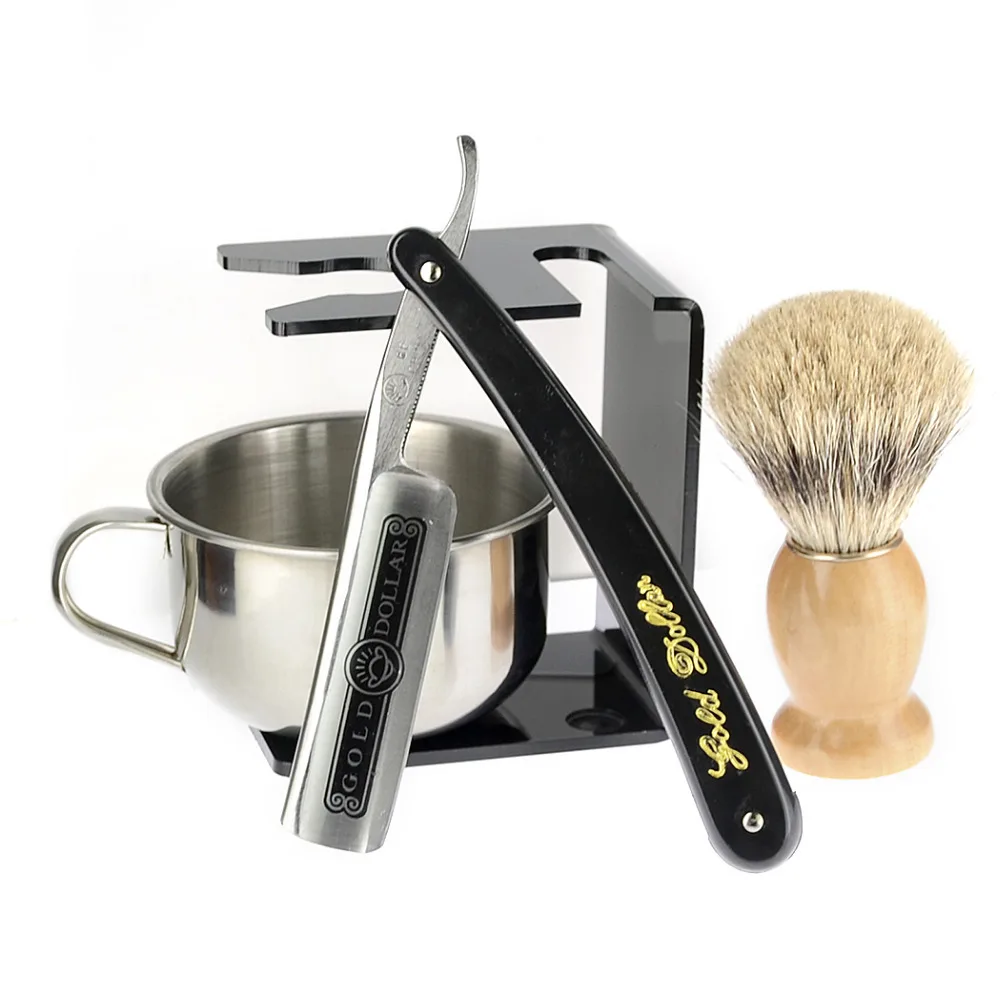 Купить ZY Прямые бритвенные бритвы Золотой доллар Best барсук кисточки для бритья мыло чаша Парикмахерская Кожа Заточка Strop ремень для мужчин набор Цена Дешево.