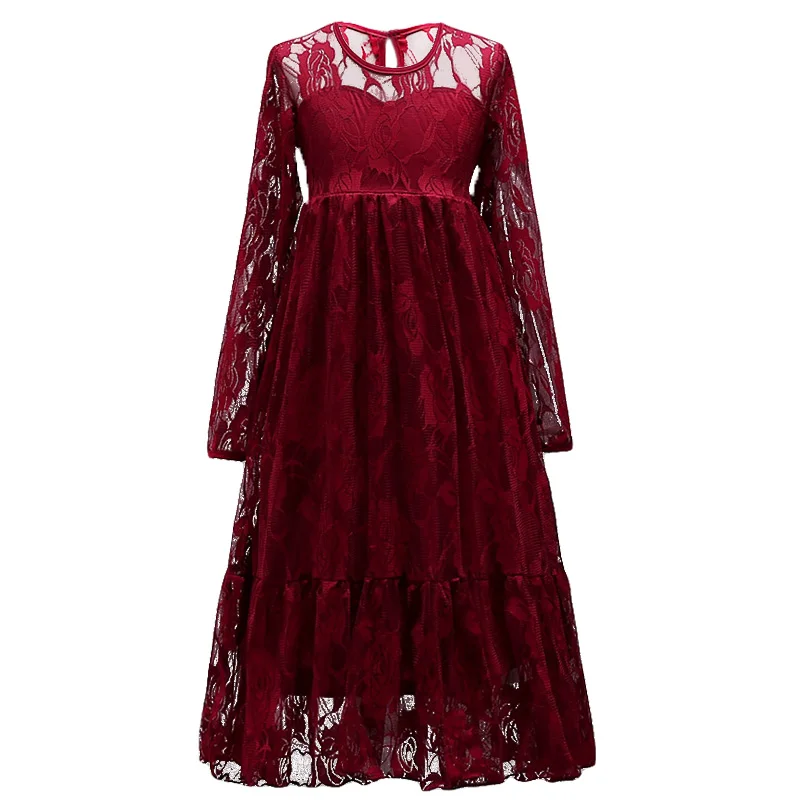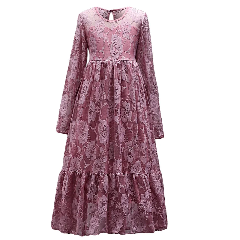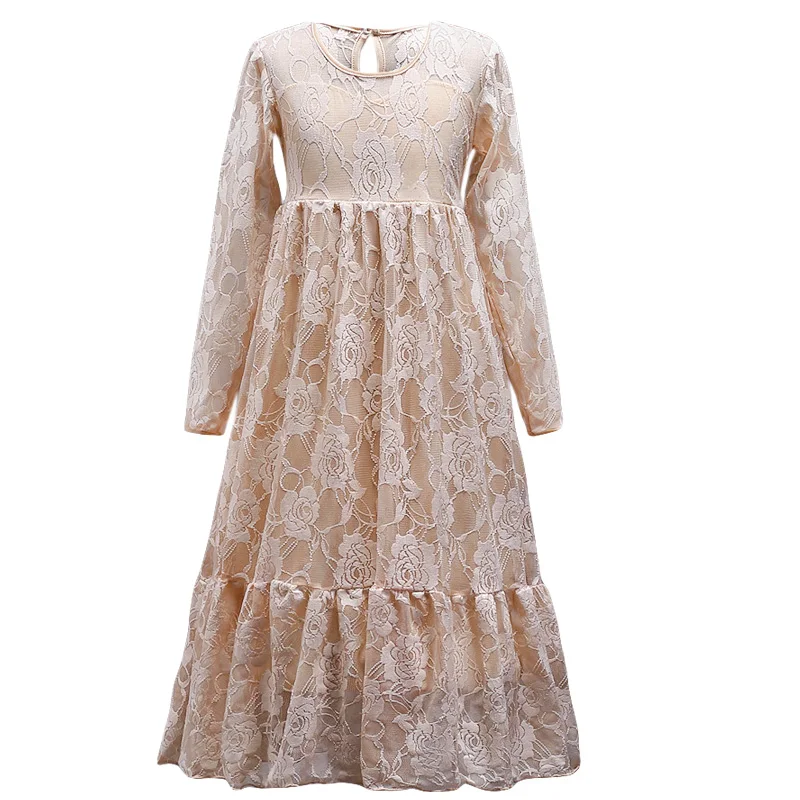 Купить 2018 г. Новый стиль для девочек Одежда для детей От 3 до 12 лет девушка ажурные Длинные рукава вечернее платье Повседневное платье принцессы Продажа Дешево