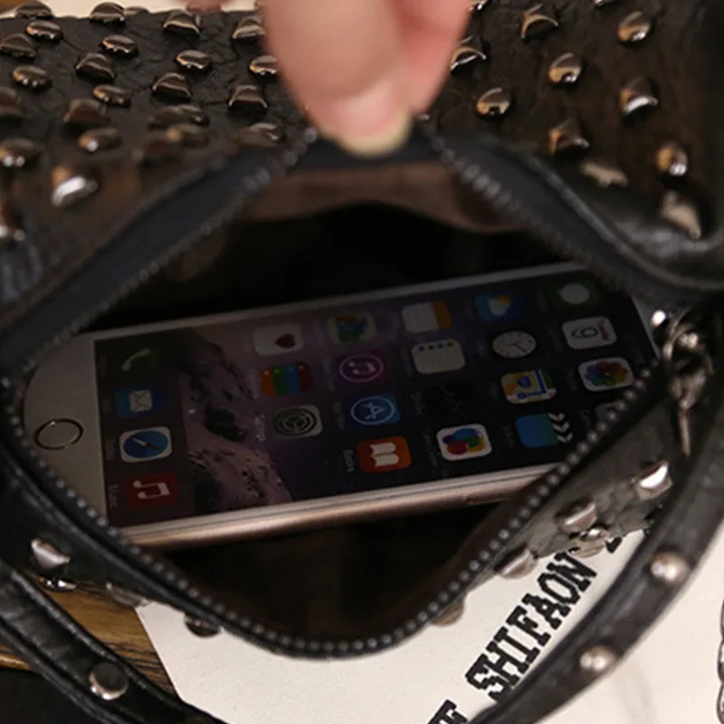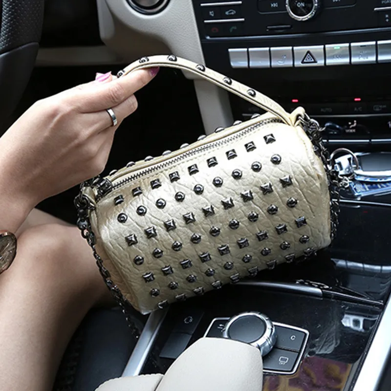 Купить Ciezun Kisoer carteras mujer de hombro Новинка 2017 девушка мешок punk PU заклепки сумки тенденции моды цепи одного плеча косые мешок Цена Дешево.