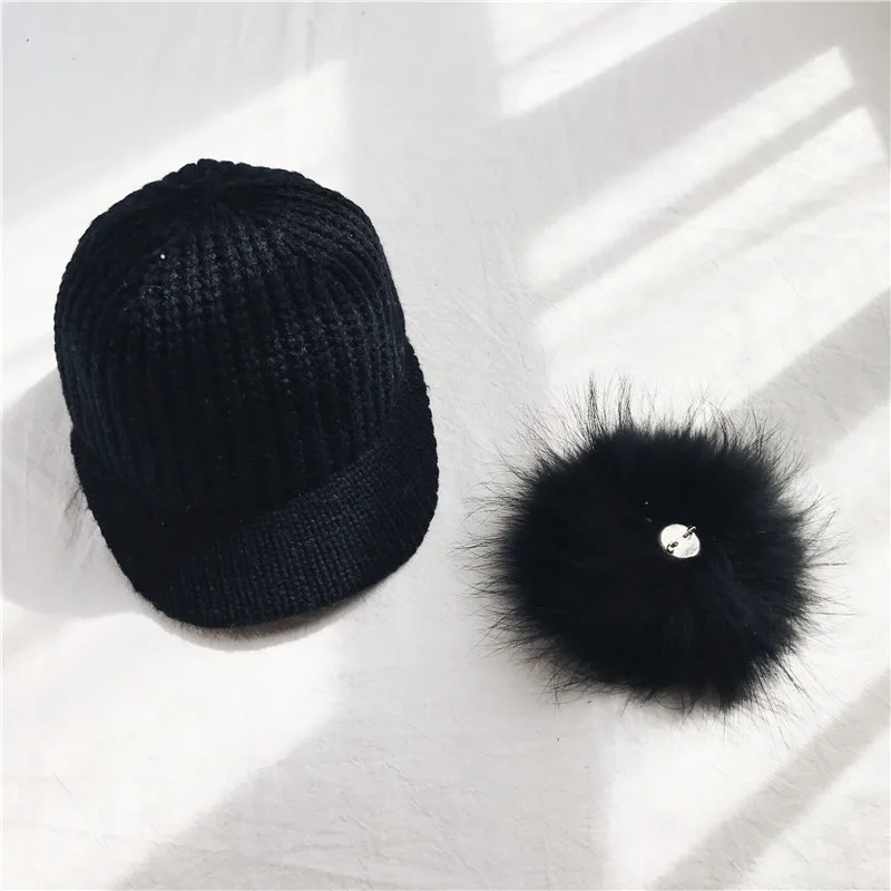 Купить Для женщин зимняя шапка теплая вязаная Шапки для женщины мех кролика мяч Кепки осень зима Дамская Мода Hat козырьки корейский черный, белый ц... Продажа Дешево.