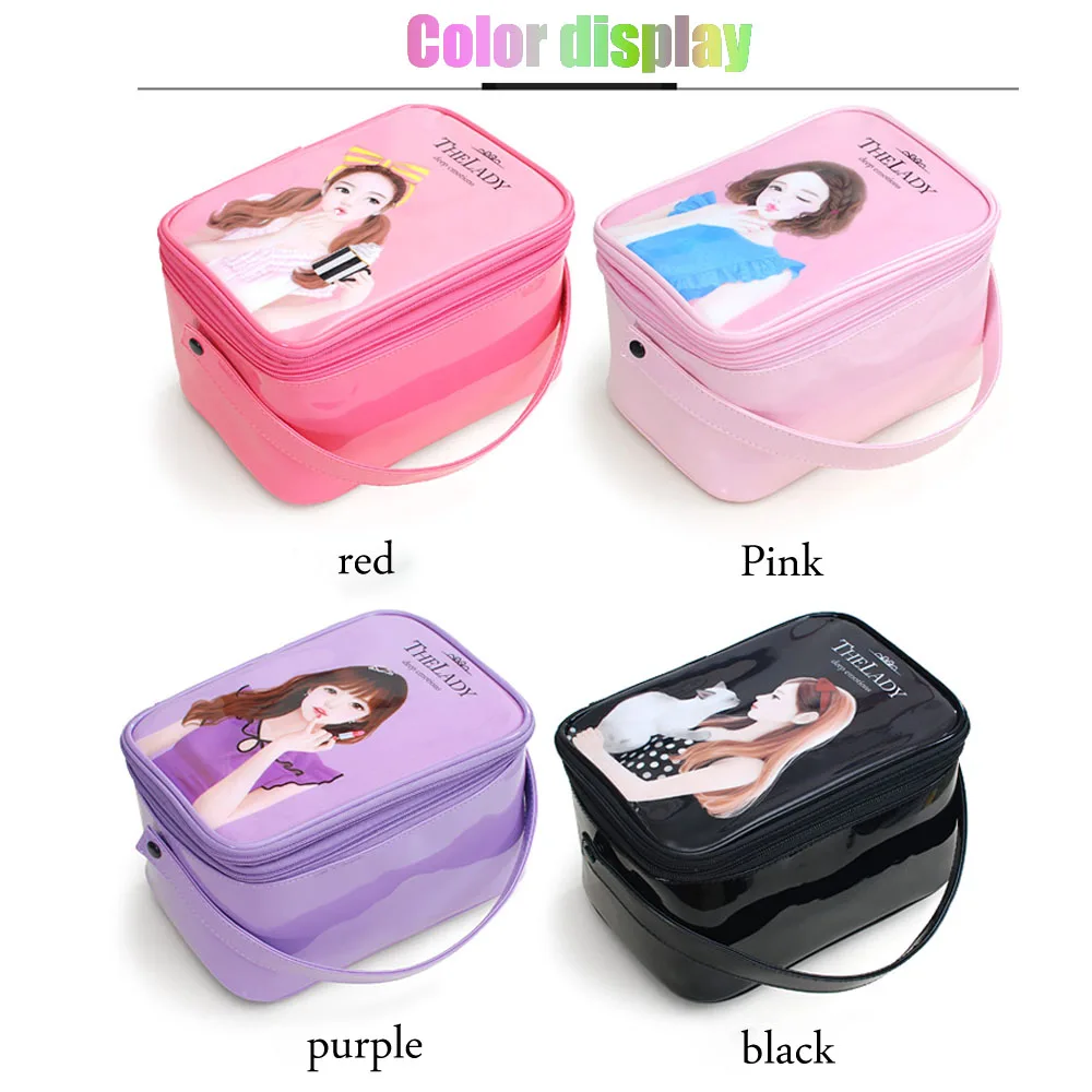 Купить Ms. waterproof PU косметичка двухслойные косметические сумки для путешествий Органайзер чехол косметичка лакированная кожа принт сумка для макия... Продажа Дешево.