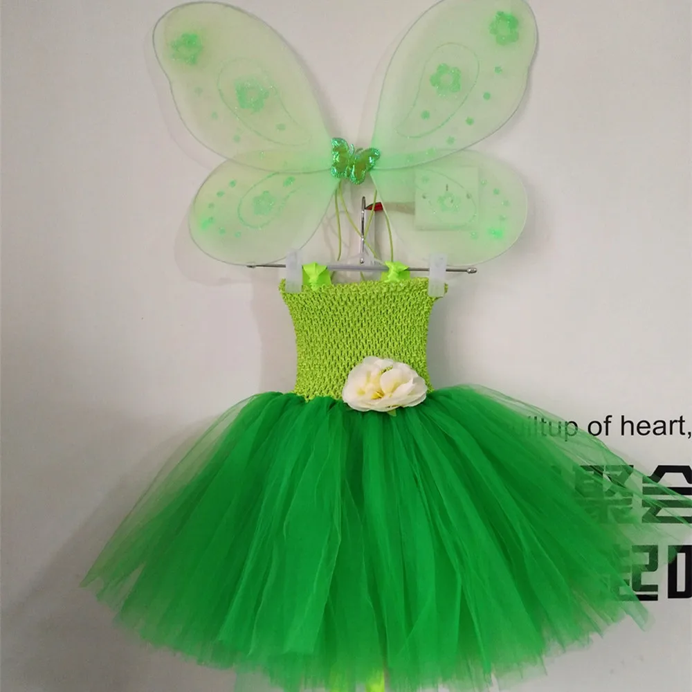 Купить Tinkerbell 1 компл., платье пачка принцессы для девочек с крыльями, фатиновое платье для дня рождения для маленьких девочек, детское платье пачка ... Цена Дешево