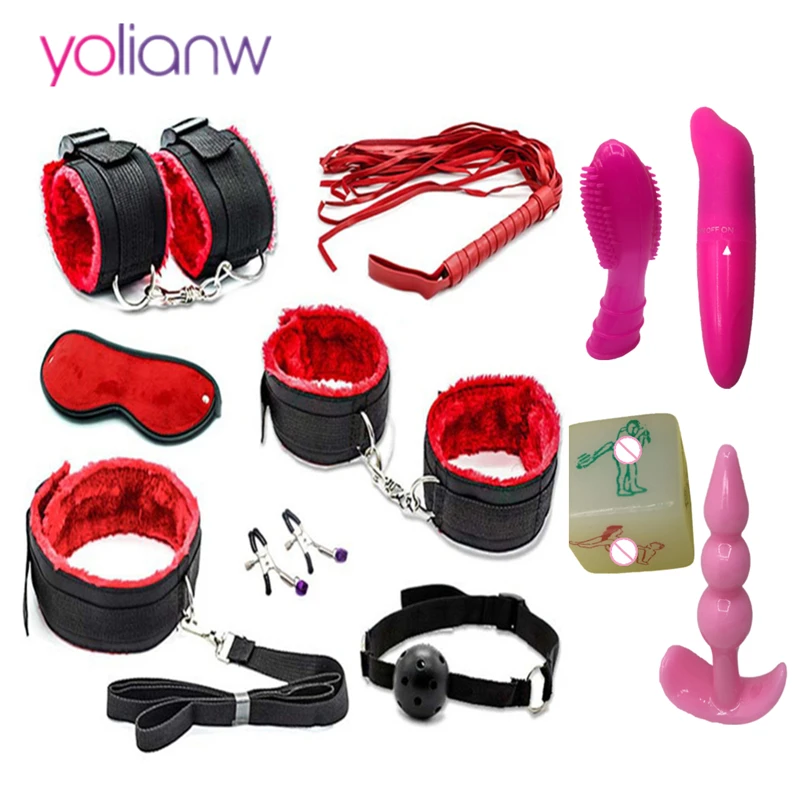 Купить 11 шт. компл. связывание с фаллоимитатор вибратор Анальная пробка секс игрушки для пар нейлон соски зажимы наручники маска для глаз эротичес... Продажа Дешево